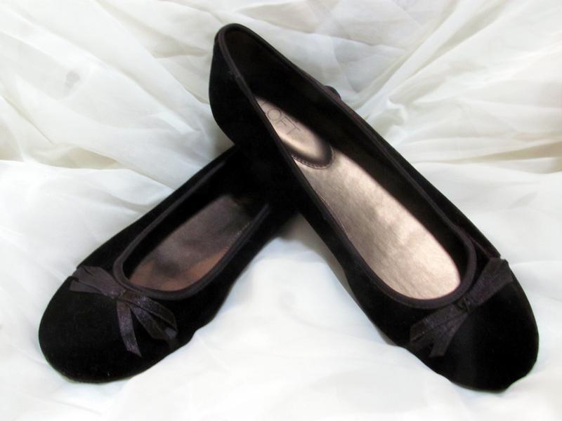 Dyeable Satin Flat. Detachable bow with rhinestones in the center. 1 1/4" Heel